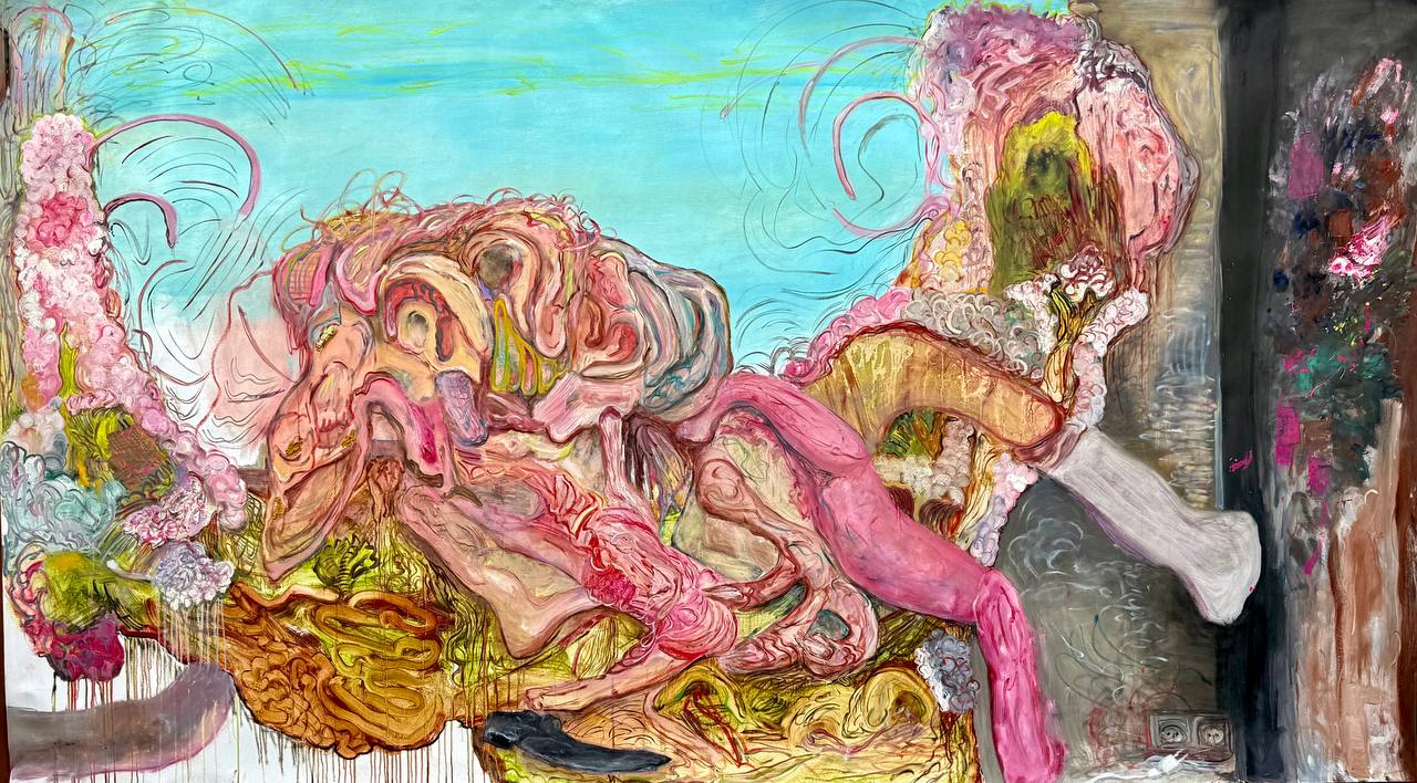 identities, online gambling, digital intimacy, and mechanisms of addiction. He uses painting, digital manipulation and hybrid forms, combining material and virtual images.