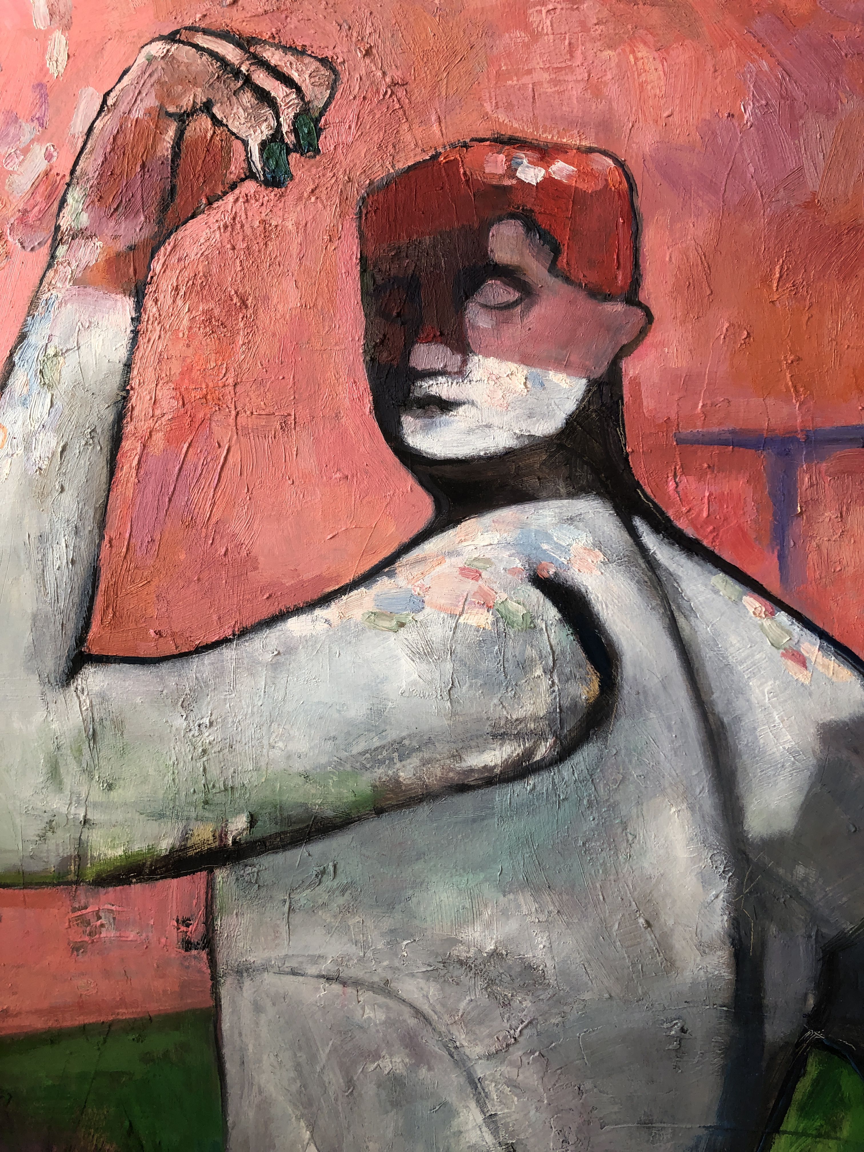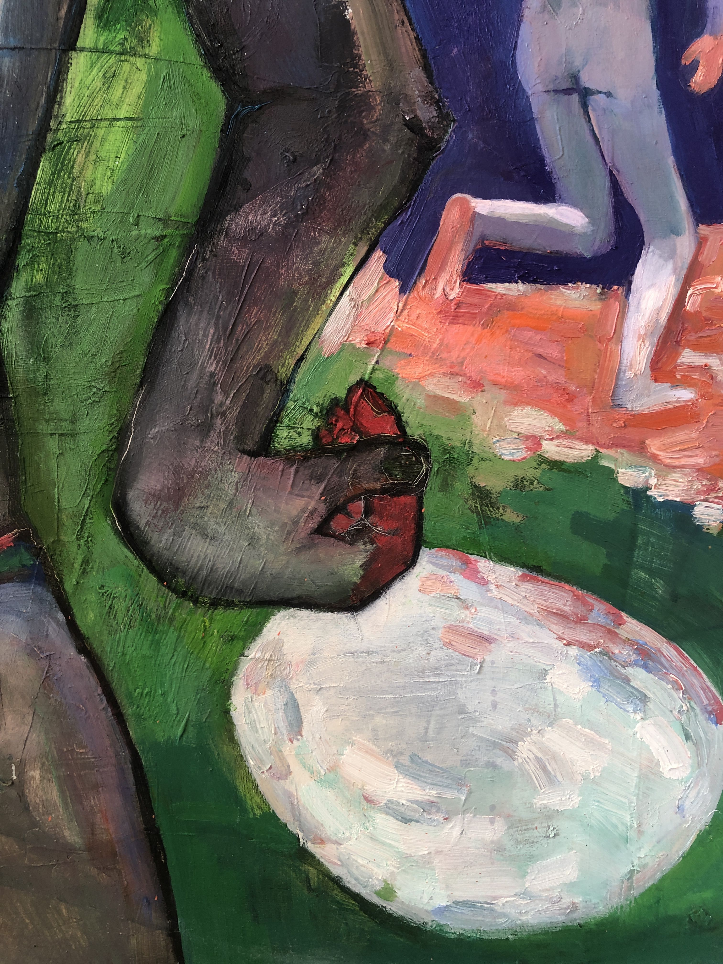 She explores new ways of depicting portraits and human figure, aiming to show the dynamics of the human body through static painterly images.