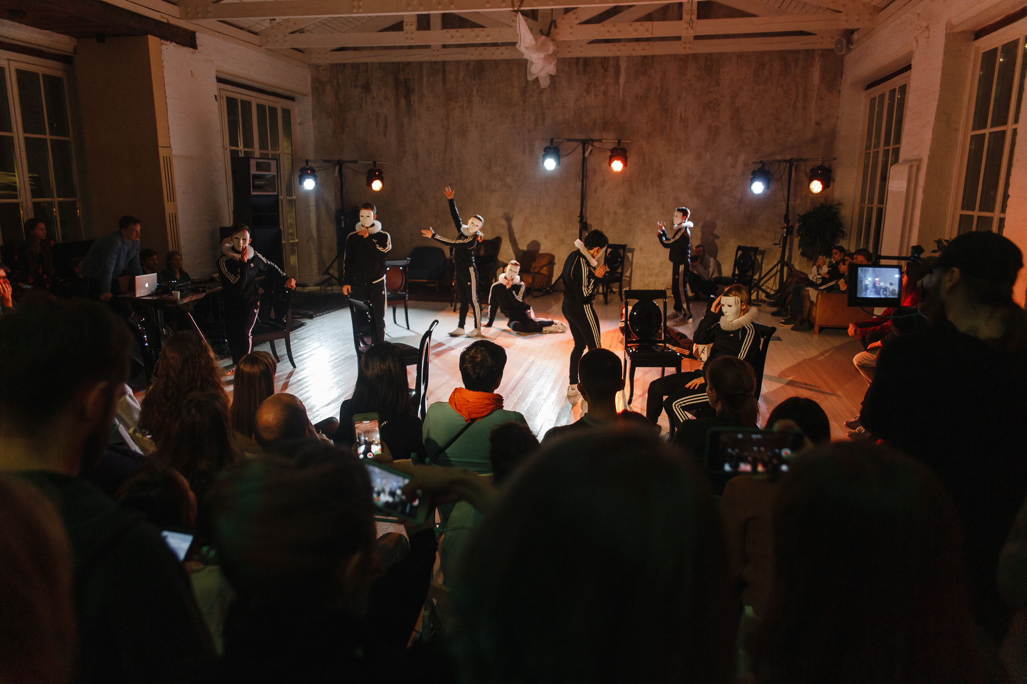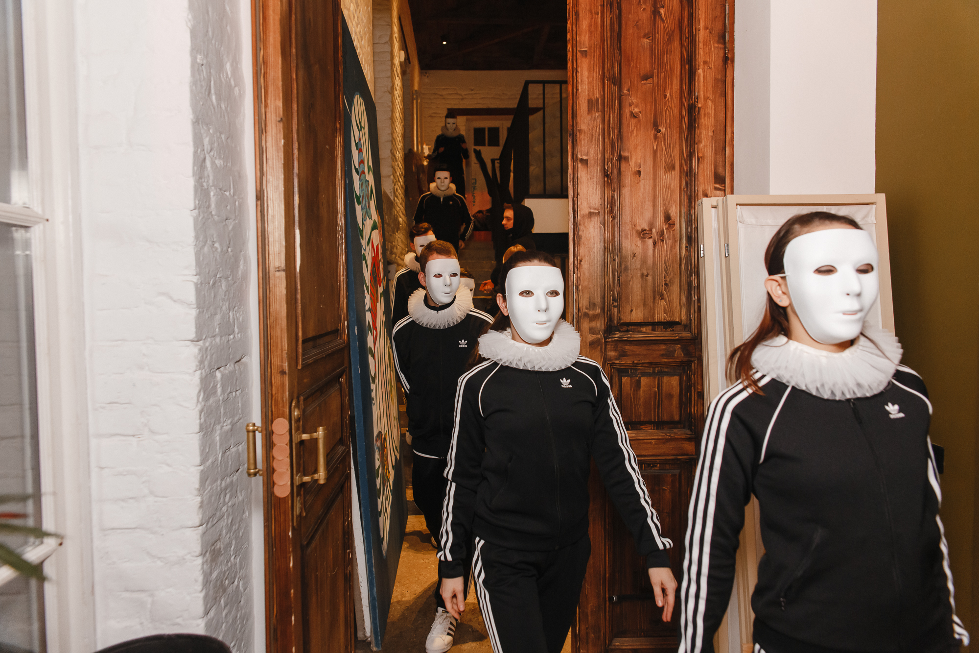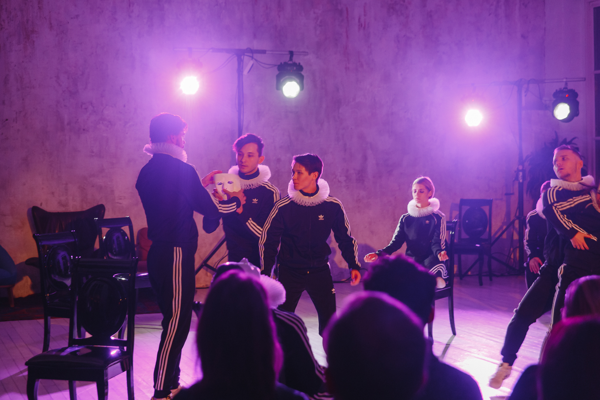 «Маски на лицах артистов символизируют связь прошлого с современностью. Люди и сейчас носят маски: это одежда, недвижимость и предметы роскоши. То, что позволяет нам укрыться от других и самим спрятаться от себя настоящих,» - рассказывает хореограф спектакля Артем Игнатьев.