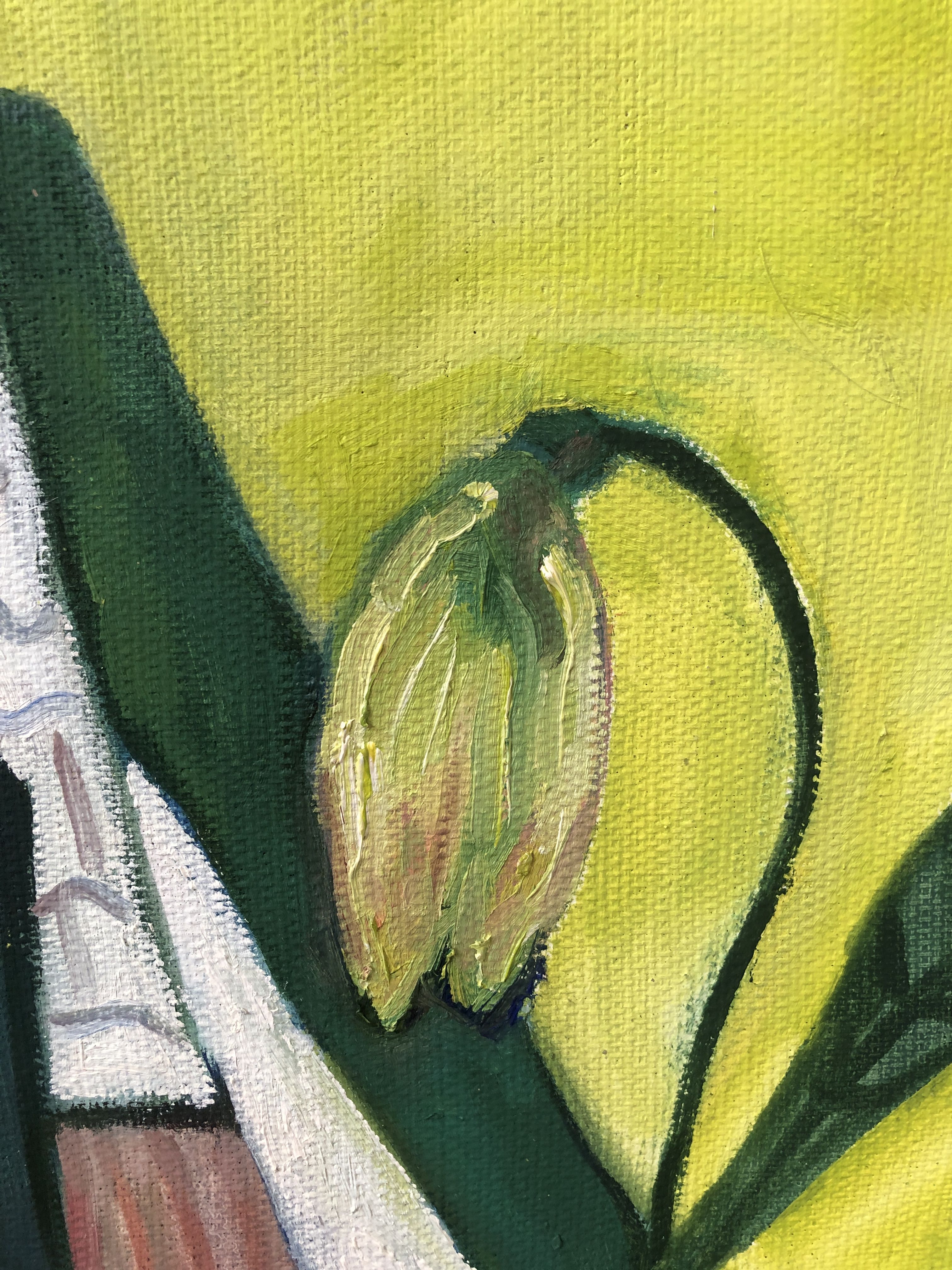 Художница, работает в традиционных медиумах с разными материалами, чаще всего с масляными красками. Лера Олейникова ищет новые способы изображения портрета и фигуры человека и хочет передать динамику