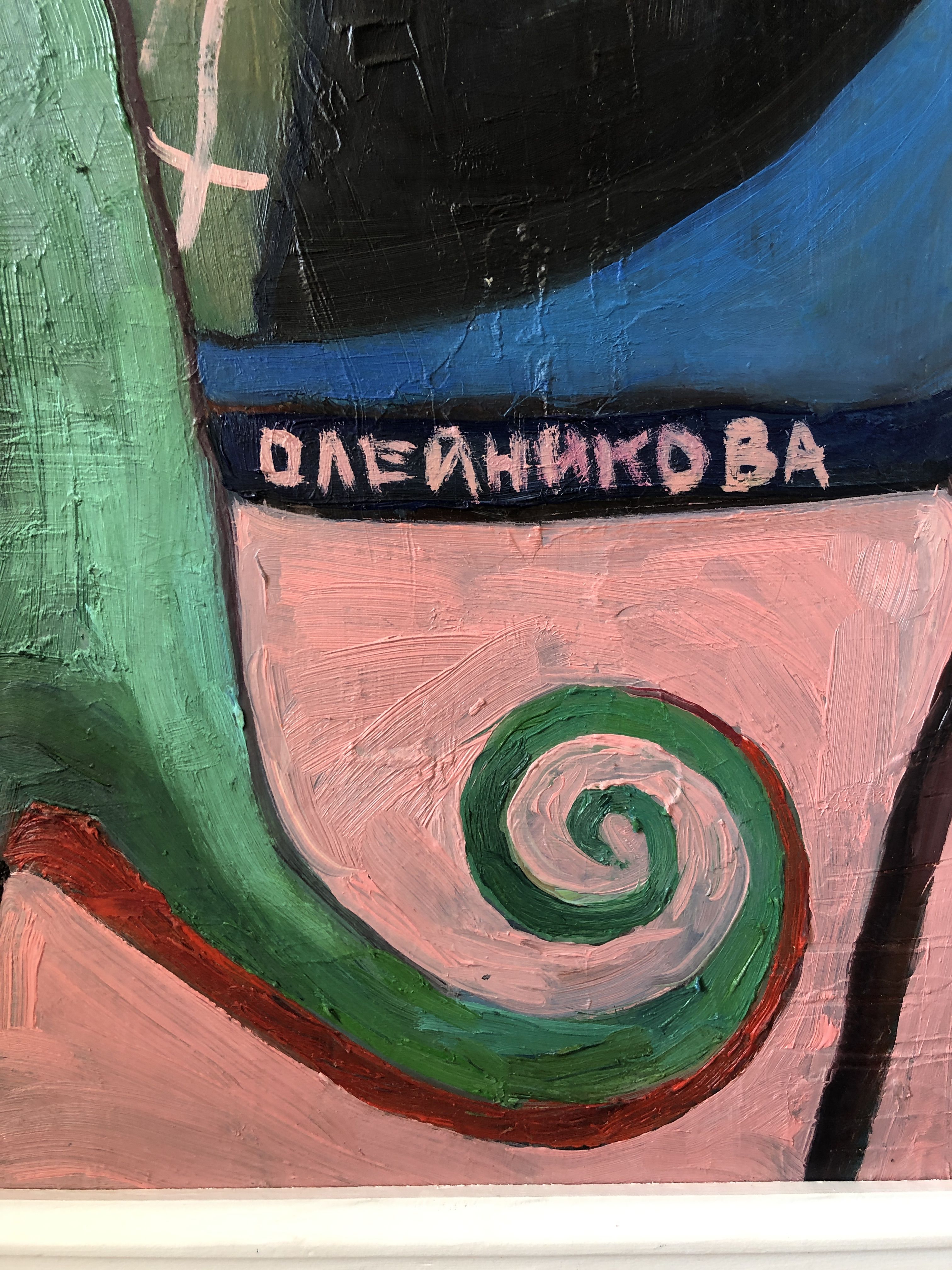 Художница, работает в традиционных медиумах с разными материалами, чаще всего с масляными красками. Лера Олейникова ищет новые способы изображения портрета и фигуры человека и хочет передать динамику человеческого тела через статичные живописные образы. Лере интересно работать с темами одиночества, отстраненности, уязвимости, близости, конфликта и напряжения; и с необычными или даже маргинальными героями.