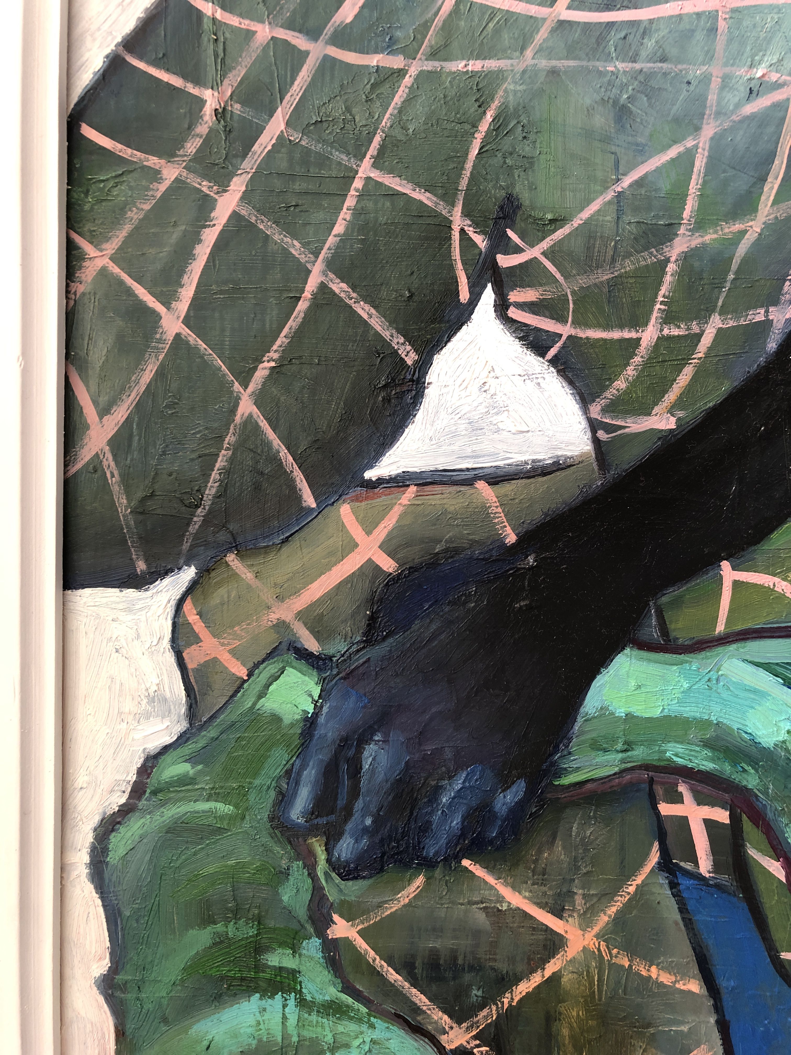 Сидящая фигура - это состояние покоя, самая устойчивая поза. За первым впечатлением спокойствия в этом состоянии может скрываться максимальная неустойчивость, напряжение, какое-то неудобство. В этой работе я пыталась найти и показать это самое неудобство через позу. Я продолжаю использовать похожую композицию в других работах.