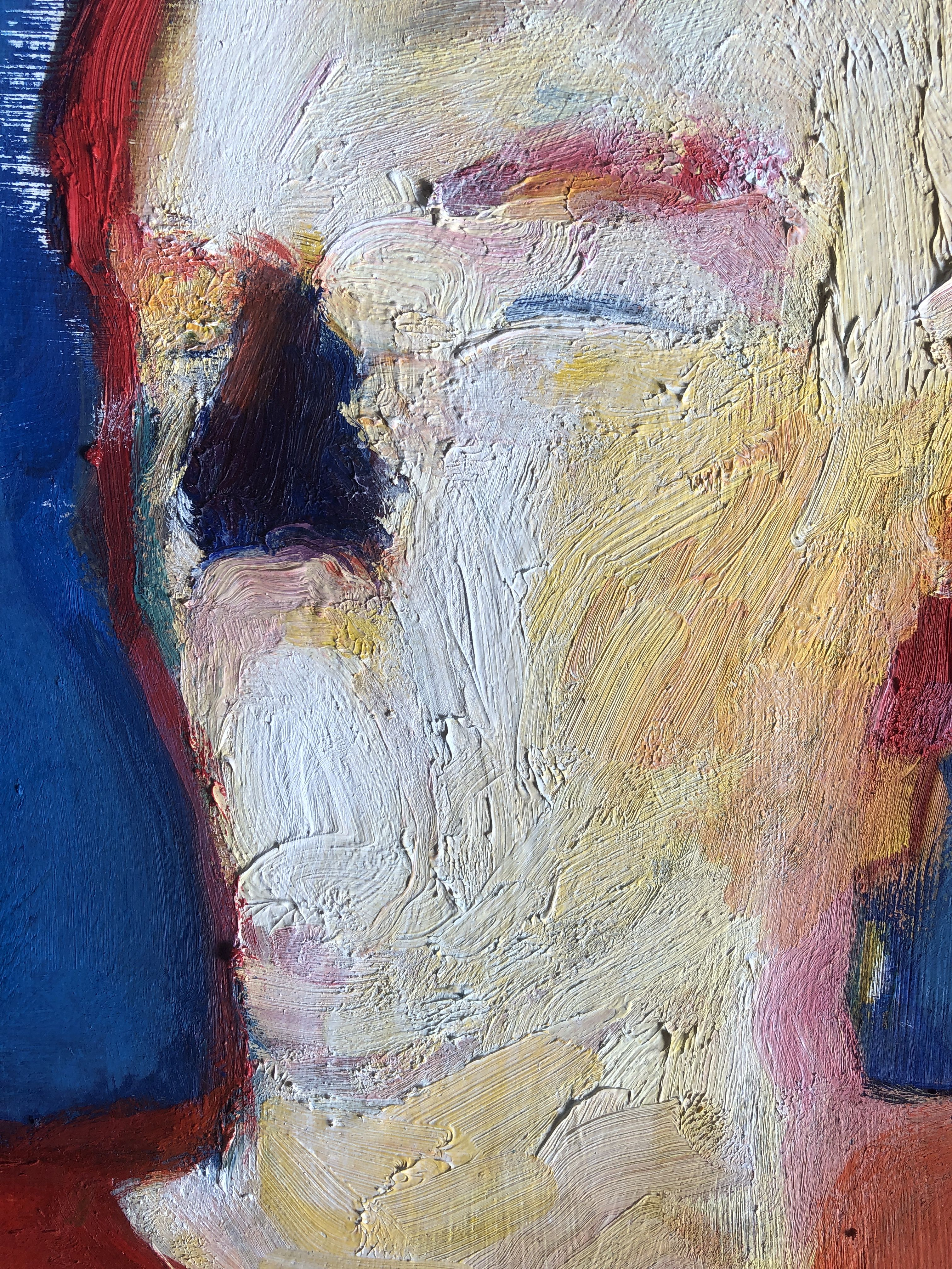 Из серии работ "Тепловизор". Персонажи запечатлены горячими и пылающими, как будто мы наблюдаем за ними через тепловизор. Их тела раскалены, а фон контрастен.
