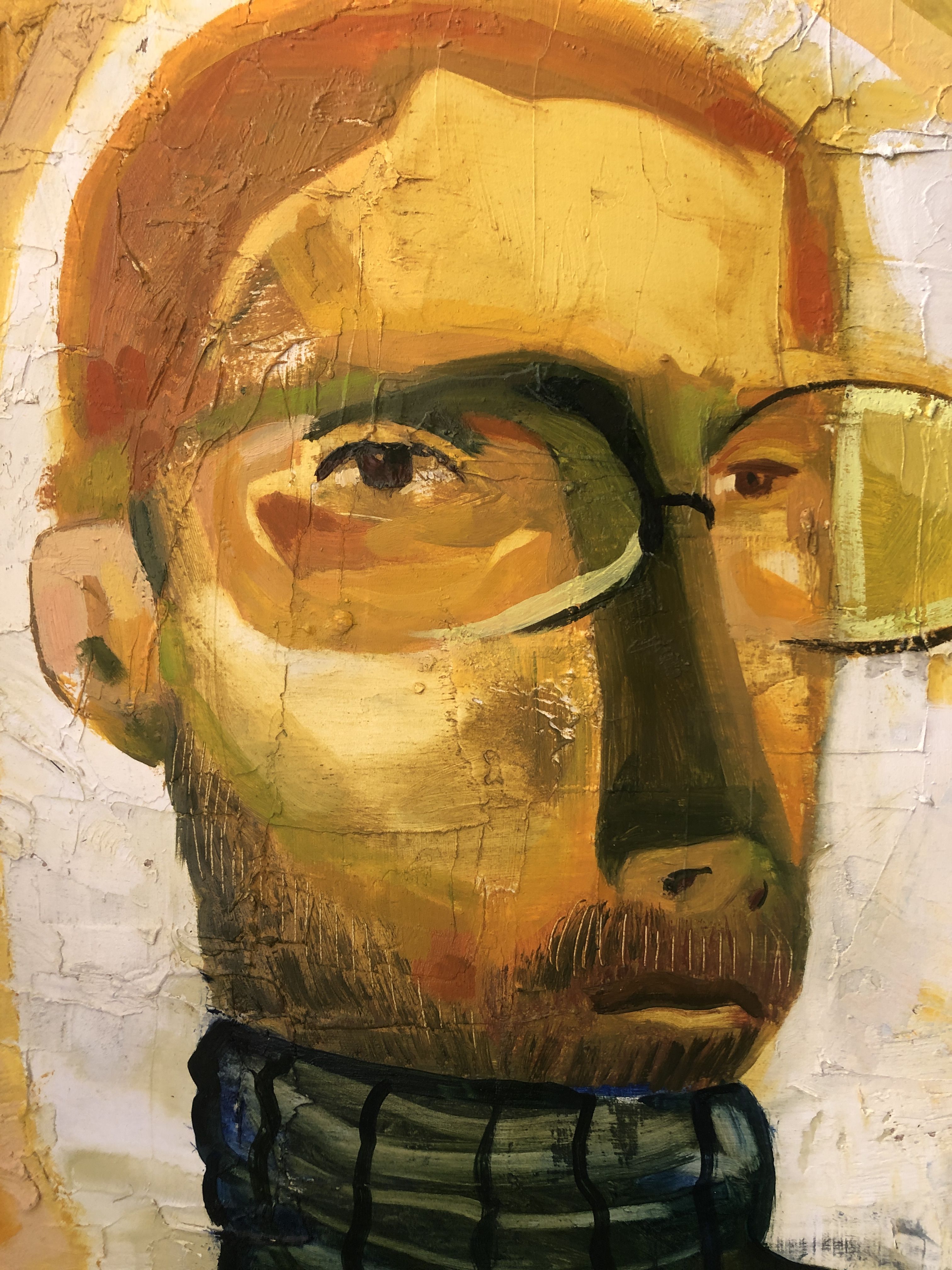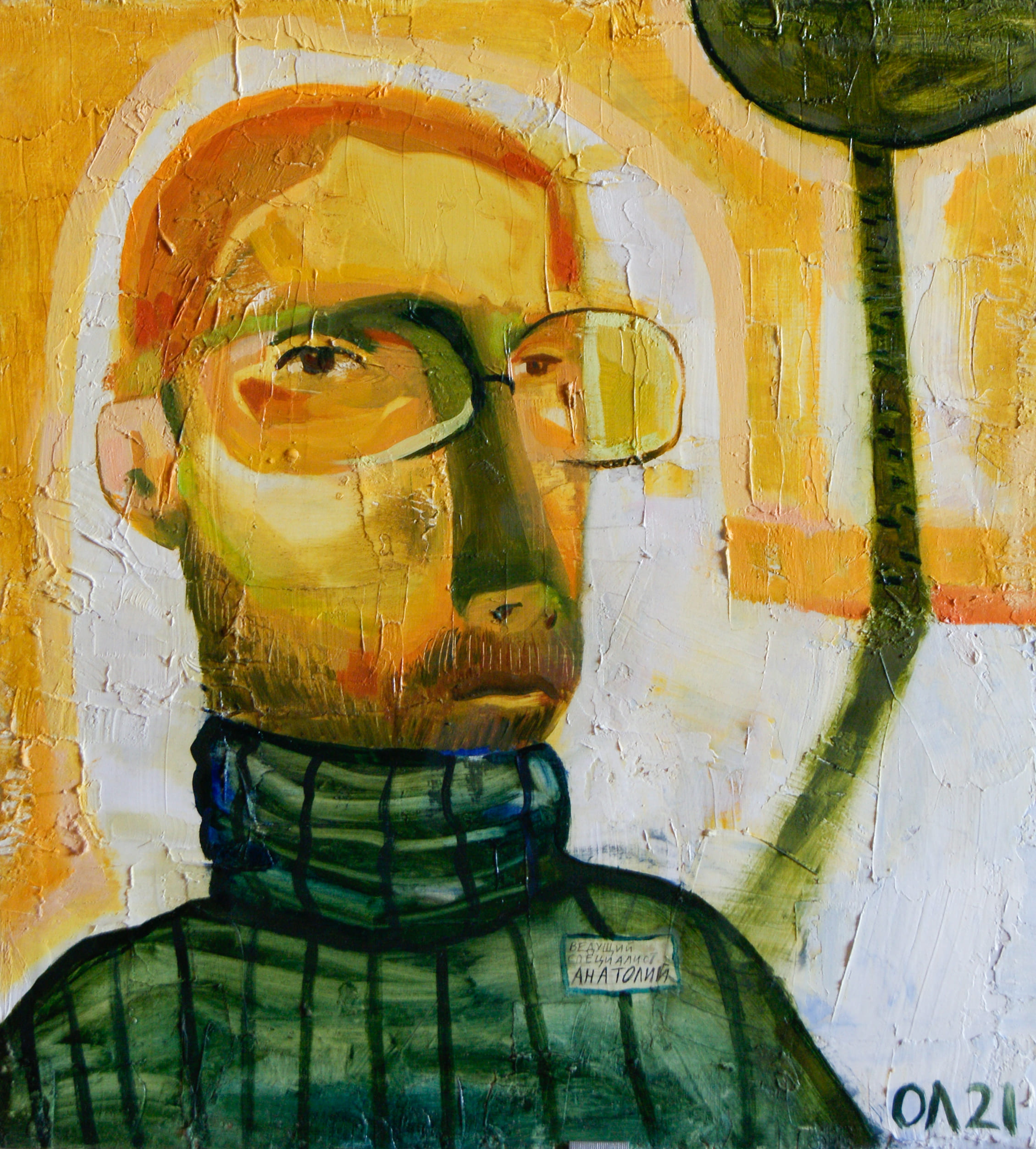 Картина из серии «Здравствуйте». Это серия портретов людей разных профессий. Все герои изображаются анфас, фон условен.